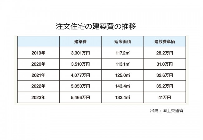 国土交通省のデータを見ると、首都圏の注文住宅の建築費は、令和元年と比べて令和5年には45%以上上昇しています。