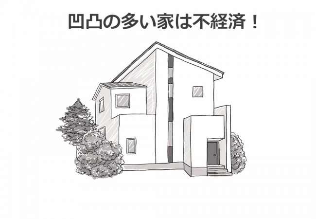 凹凸の多いデザイン住宅は、一見おしゃれに見えますが、外皮面積が増え、断熱性能的に不利になります。